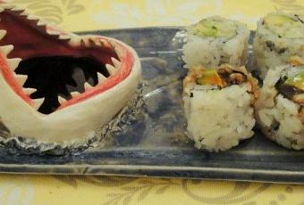 Sono dei veri capolavori e aggiungono ad un grosso piatto rettangolare la testa di uno squalo bianco con le fauci spalancate; Ma non si tratta di un semplice elemento estetico, la bocca serve per la salsa di soia che lo renderà un piatto perfetto per il sushi.