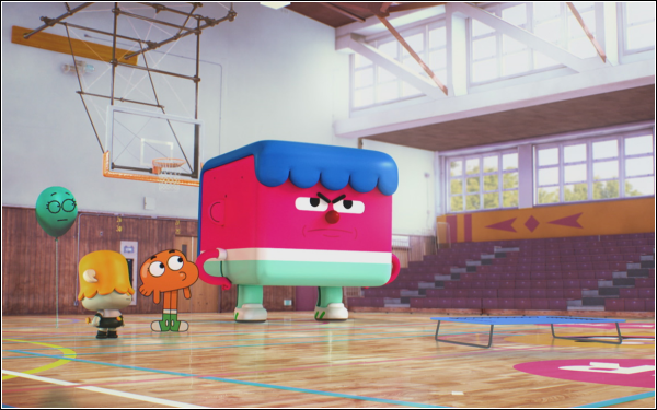 Gumball e Darwin cercano di saltare a tutti i costi la lezione di ginnastica, tormentando la povera infermiera, che rilascia loro un nullaosta per non vederli più…purtroppo i due amici vanno a sbattere contro l’allenatore della scuola, un’enorme essere multicolore a forma di cubo.In palestra, vediamo Gumball come una totale schiappa, e suda fino a formare un lago, o addirittura fa la ruota senza riuscire a fermarsi. In palestra, è presente anche il palloncino Alan (che solleva un peso con il filo), il fiore Leslie e la bovina Jimmy, una bulla molto atletica. È divertente vedere l’ossessione per l’allenatore per le sue prodezze alle olimpiadi del 1996 (ogni volta che ne parla, mostra una foto di se stessA…infatti alla fine si scoprirà che l’allenatore è una femmina) e il fatto che la ginnastica prima o poi salverà la vita: anche se Gumball non sa certo scegliere la strada migliore per seguire Jimmy e l’allenatrice, e quindi sprofonda nel cemento fresco e si butta dal trampolino in mezzo alla strada. Altre gag belle dell’episodio sono appunto quella del trampolino da cui Tobias viene spodestato e il flashback dove Sarah il gelato viene assaggiato da Jimmy. Forse è un episodio un po’ lento, ma è pieno zeppo di buone gag. Voto: 8/10