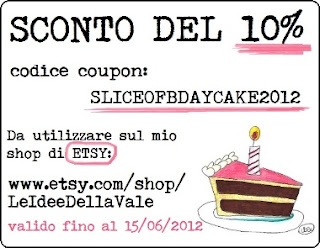 Ricordo inoltre che fino al 15/06 potrete TUTTI usufruire di un codice sconto del 10% su tutti gli articoli del mio Etsy-negozietto: