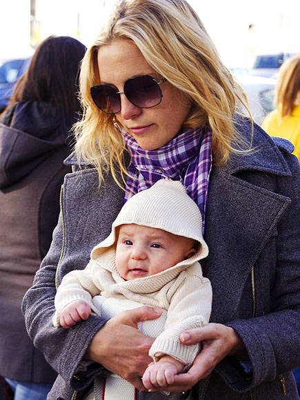 Il piccolo Bingham di 3 mesi in braccio a mamma Kate Hudson è uscito per una passeggiata nel quartiere londinese di Nottigh Hill con mamma e papà Matt Bellamy (non nella foto) domenica mattina.