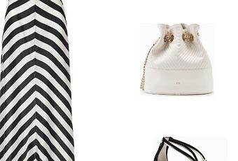 Maggio è il mese che apre le danze per ciò che riguarda le cerimonie, o meglio i matrimoni. Dovete sapere che io sono Veneta e ho sposato un Siciliano, le due estremità dell’italia che si incontrano (e forse vi starete chiedendo come ci siamo conosciuti, ma è una storia lunga…..un giorno ve la racconterò) che nel momento del matrimonio ha rotto la tradizione decidendo di sposarmi proprio in Sicilia a Siracusa. Questa è stata una mia decisione perché ho sempre ammirato le loro tradizioni, il fatto che le donne si presentassero sempre con un abito lungo, eleganti e femminili. E così è stato……abiti lunghi, ricchi di dettagli proprio come questo di Elisabetta Franchi, in raso con grafismo a righe bianche e nere con il giusto tocco femminile regalato dalle due scollature. Semplicemente fantastico!!! Sandali neri con fasce dorate, una bianca borsa chic, originale e moderna, per concludere con orecchini in cristallo a forma di rombo.