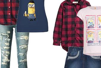 Care amiche, ma specialmente mi rivolgo a voi mamme, potevo non proporvi un Look Mini Me Minions? I Minions hanno raggiunto, o meglio invaso, con il loro colore e la loro allegria, le nostre case e i nostri armadi con capi di abbigliamento e oggettistica personalizzata. Come sempre quando un cartone, o un personaggio ha successo, i vari brand propongono qualcosa con la stampa del cartone che i bambini più amano. Devo ammettere che non sono una grande amante dei capi di abbigliamento con stampe cartoons……ma i Minions sono troppo simpatici tanto da pensare ad un giusto look casual, sia per la mamma che per la figlia! Partiamo dalla mamma…… una classica tee con una divertente scritta “Keep Calm And Eat Banana”, jeans con strappi, una camicia a quadri in morbida flanella di cotone e per concludere dei fantastici mocassini in vernice blu, suola bianca e dettaglio sul davanti. Ora passiamo al look per bambina…….sempre una tee a con stampa Minions sul davanti, una gonna in denim con inserti a contrasto, la camicia uguale alla mamma, in tessuto morbido e taschino e per finire una scarpa morbida, studiata per i piedi dei nostri bimbi…..slip on bordeaux in nappa.