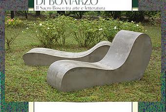 Collezione di sedute in cemento per esterni con forme che si armonizzano con il paesaggio.