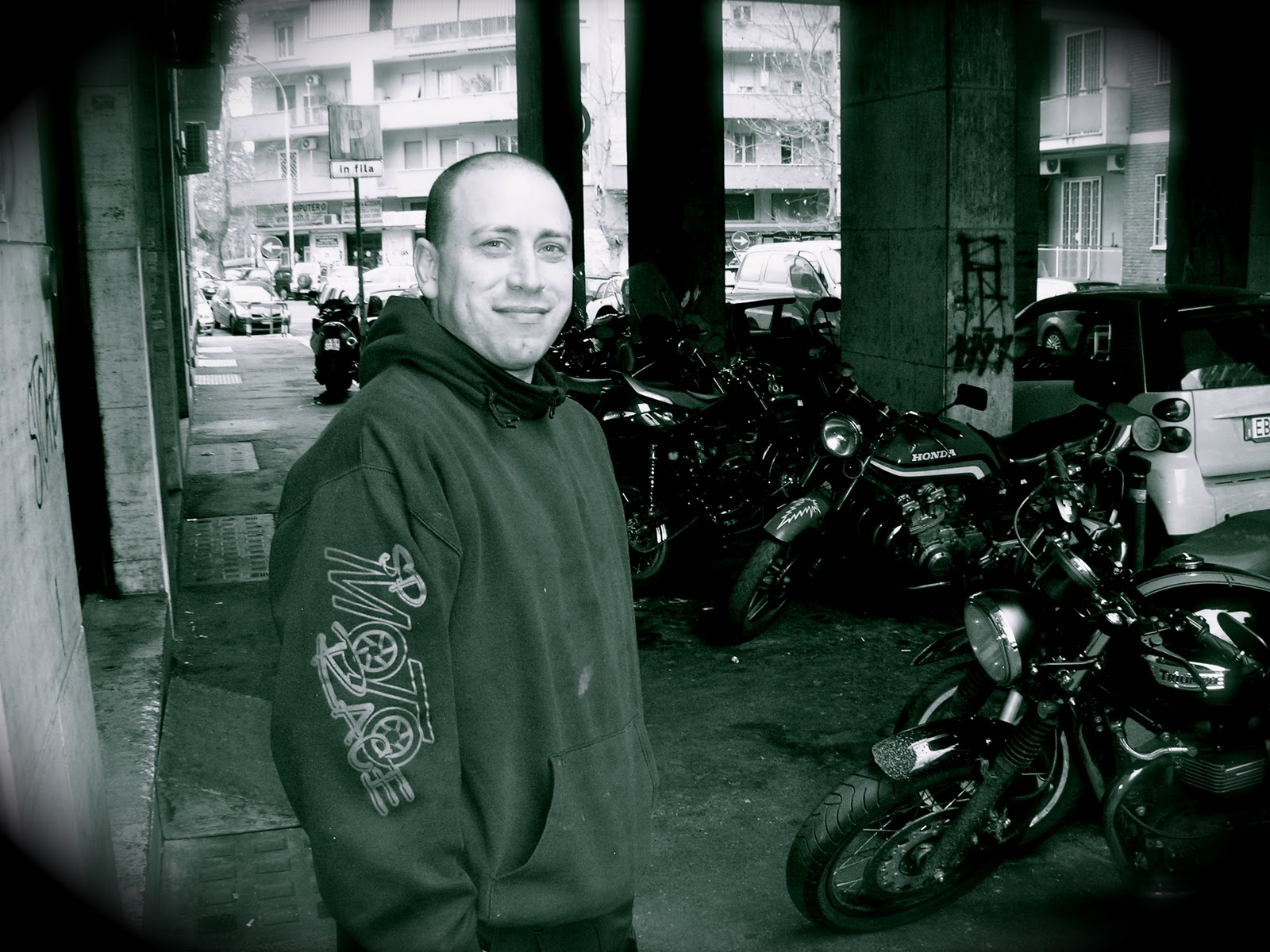 Ma veniamo agli amici... Perché c'è un bell'articolo su Cafè Twin di Roma, famosi soprattutto per aver realizzato la mia Inazuma (ehehehe)... In bella mostra ci sono le due Mr. Gasser di Bruno e Daniele, la celeberrima Cerbera e l'omologa Executive scrambler premiata ai Motodays... Tutte su base Triumph modern classic e tutte già su questo blog (basta cliccare sui link). Poi ci sono i ritratti di Bruno, con il piglio del biker estremo e esistenzialista, di Daniele, senza occhiali, e dunque con lo sguardo intenso nell'obiettivo, di Stefano, con un improbabile casco da scooter (ahò, ma insommaaaa, cosa direbbero all'Ace Cafè!) e di Emanuele, che hanno ripreso solo in secondo piano nella foto di gruppo (che in fondo non è poi così brutto... cioè, dai, è simpatico)... Meno male che c'è Jerry (la psicologa del Gruppo?) che salva la situazione. Dopo tutto ciò, potrò ancora dire che sono amici miei? Spero di si: dai, dai, dai, che il successo se lo meritano tutto!!!