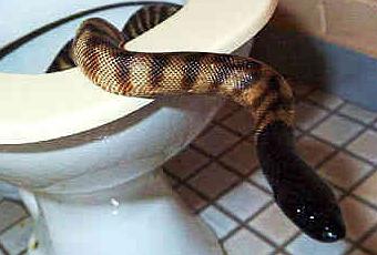 Si trattava di un serpente corallo,ma della specie non velenosa, lungo un metro che faceva capolino dalla tazza del water.