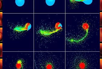 Fotogrammi tratti dalla simulazione della collisione tra la nascente Terra e un protopianeta delle dimensioni di Marte, dove i colori indicano la temperatura delle particelle. Crediti: R. Canup, SwRI