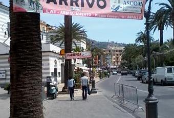 Ieri mattina i preparativi, i maxischermi tv, le antenne di radio e televisioni, i tir degli sponsors e i camioncini che vendono i gadget ufficiali della corsa.