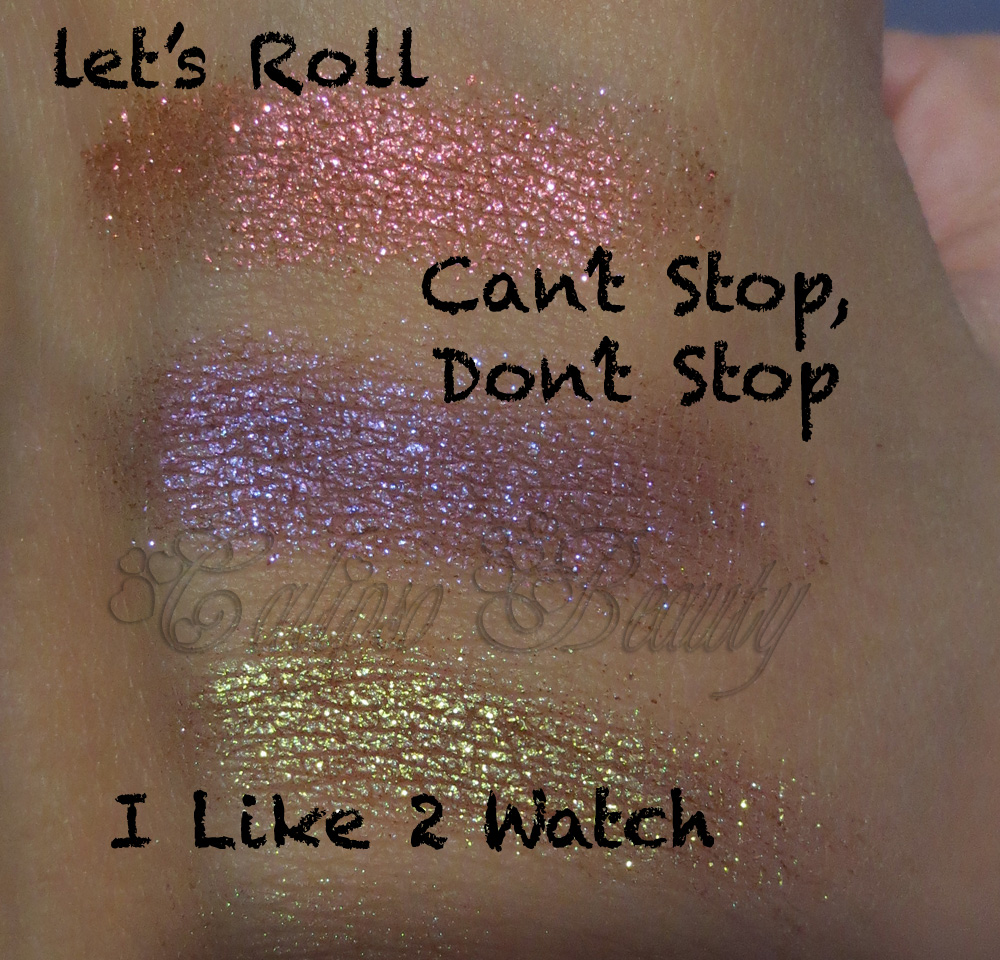 TemptaliaNella foto complessiva manca I Like 2 Watch!Tutti bellissimi colori la cui scelta definitiva è risultata davvero difficile. Dal principio ero partita con Let's Roll, Can't Stop Don't Stop, I Like 2 Watch, Try Me On, Get Physical e Feel The Fever.Decisamente troppi e inoltre avevo più di una remora! Paura che sulla palpebra non rendessero come nello swatch, dubbi sulla consistenza perché ciò che ha glitter all'interno può diventare poco confortevole e dubbi sul fatto che quest'ultimi fossero in superficie e volatili.Sono andata in store il giorno ufficiale dell'uscita. Dopo essermi cosparsa il dorso della mano con tutti i colori possibili, aver fatto qualche ragionamento sulle tonalità che avrei sfruttato di più e testando dal vivo la consistenza... Ne ho scelti tre!
