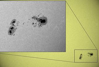 Un folto gruppo di macchie solari è stato osservato sulla superficie del Sole per un periodo di sei giorni, dal 21 al 26 agosto scorsi. La particolarità del fenomeno è che nel corso dell’osservazione il grappolo di macchie, inizialmente raggruppate in un singolo cluster, si è poi a poco a poco separato dando luogo a gruppi distinti. Nella regione si sono prodotte diverse eruzioni solari di classe M (ovvero di media intensità). Nel periodo considerato tali macchie erano le uniche di significativa grandezza osservabili sul Sole. L’immagine mostra il fenomeno come osservato il 26 agosto, una volte che le macchie si sono distanziate.
