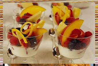 - Suddividete la macedonia in 4 coppette, che avrete precedentemente fatto raffreddare in frigorifero, e copritela con la mousse alla banana.