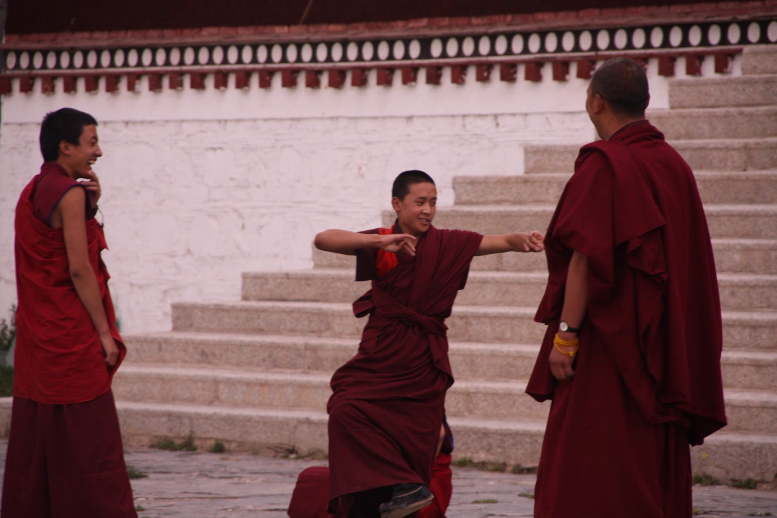 Per arrivare a Xiahe da Chengdu occorrono due giorni di viaggio (per coprire una distanza di circa 500 km). Siamo partiti la mattina presto dalla grande città. La macchina che abbiamo noleggiato è stipata di persone; l’autista ha approfittato del viaggio per cercare altri passeggeri bloccati a Chengdu. Ci siamo diretti verso Nord, e dopo poche ore si sono aperti di fronte a noi scenari incredibili: altopiani, praterie, yak che pascolavano sorvegliati da mandriani a cavallo. Ho chiesto ad Alex se lui sapesse cavalcare, e, guardandomi come se gli avessi fatto la domanda più ovvia del mondo, ha risposto che la sua famiglia allevava cavalli. Ora allevano capre, e al posto dei cavalli hanno comprato due moto.