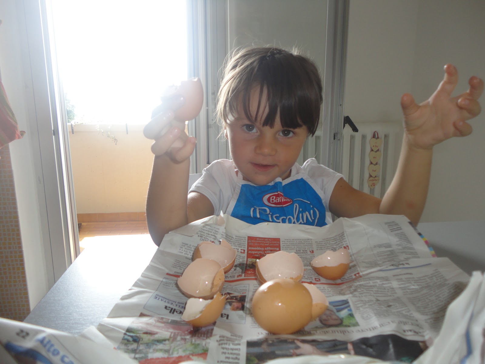 Poi le abbiamo sgusciate sotto con altre bambine e tutto questo perché tra un'ora c'è la grande merenda nel prato con le coperte succhi e i nostri dolcetti!!!Ecco il risultato finale: