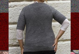 Spaghetti: un bel cardigan a maniche corte, con dei bellissimi decori sul dietro e sulle finte tasche davanti, lavorato in tondo in un unico pezzo senza cuciture, top-down.