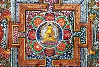Il mandala è fatto di figure geometriche come lo yantra (vedi sotto) ma a differenza dello yantra ha sempre al centro la figura di una divinità: un Buddha o un Bodhisattva. Il devoto evoca dentro di sé la divinità (che simboleggia un’energia psichica) meditando sul mandala. E durante recita un mantra, cioè una formula rituale che secondo il buddhismo esoterico contiene in sé una straordinaria energia “sottile”, capace di provocare il risveglio della coscienza e portare il meditante all’illuminazione.