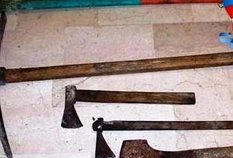 el bagagliaio dell’auto sono stati rinvenuti un’ascia, due accette, due picconi, una cesoia, due taglierini, quattro cacciaviti, una tenaglia, due coltelli con manico in ferro e uno a serramanico una pinza e una roncola, attrezzi generalmente utilizzati per la perpetrazione di reati contro il patrimonio nelle aree rurali.
