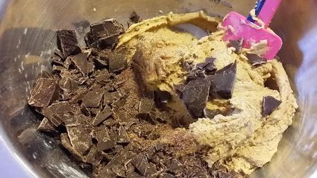 Scaldate il forno a 180°, lavorate il burro normale con lo zucchero, con lo sbattitore elettrico a ,massima velocità così da ottenere una bella crema, aggiungere, la vaniglia, l'uovo e il burro d'arachidi e continuate a lavorare per qualche minuto. Ora, aggiungete farina, bicarbonato e un pizzico di sale, Amalgamate finchè avrete una crema densa, ora unite il cioccolato tritato.