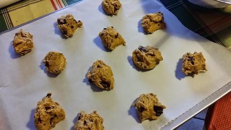 Su di una placca con carta da forno, sistemate ben distanziate, delle cucchiaiate d'impasto, non devono essere ne regolari ne belle, ma considerate che in cottura si allargano.Infornate e cuocete per 10/12 min. o finchè non saranno dorati in superficie, appena sformati i biscotti risulteranno molto morbidi ma raffreddando diventeranno della giusta consistenza.