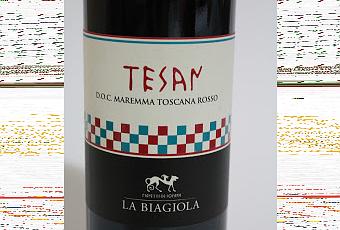 Un grande blend di Sangiovese, Alicante e Canaiolo il Maremma Toscana Doc Tesan vendemmia 2013 prodotto dall'azienda vitivinicola La Biagiola di Sovana di Sorano in provincia di Grosseto. Di colore rosso rubino profondo si presenta subito come un'esplosione vulcanica di profumi, d'altronde le sue uve provengono da terreni fatti di cenere e lapilli. Intensi sentori speziati di pepe, note balsamiche e di macchia mediterranea evolvono verso la frutta rossa matura, lasciando anche spazio alla foglia di tabacco.Davvero complesso. E anche al gusto non delude: corposo, caldo, ben 14% di alcol in volume, rotondo, sapido e gradevole. Una vena acida viva accompagnata da un tannino elegante e da un finale persistente con note di liquirizia. Nessuna nota stonata: un'eleganza anticipata da un'etichetta distintiva, legata alla civiltà etrusca che si è affermata proprio in quei luoghi. Il nome Tesan deriva dall'etrusco e significa "aurora", il motivo a scacchiera presente in etichetta è un disegno ricorrente di questa affascinante civiltà e sta a simboleggiare il rapporto tra terra e cielo. Si abbina con primi piatti con salse a base di carne e secondi di carne rossa.