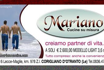 Il manifesto pubblicitario di Mariano cucine (dalle parti di Lecce, una zona della Puglia molto gay friendly) presenta due uomini che camminano romanticamente mano nella mano ed uno slogan altrettanto semnplice ma d'effeto... "cerchiamo partner di vita..."