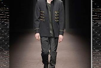 Una collezione pensata e raffinata, duttile, apparentemente semplice, in realtà attentamente studiata cucita addosso ad un uomo contemporaneo. Capi sartoriali, come nel caso dei pantaloni classici di gabardin di lana che si arricchiscono di dettagli colorati come in un gioco del “vedo non vedo”. Capi duttili quindi, come per il giaccone che all’occorrenza diventa un comodo caban e che ancora diventa una giacca grazie ai preziosi bottoni simili a piccoli lingotti di oro. Giacche in seta cachemire o in lana cachemire, pantaloni rovesciati e in velluto/neoprene, camicie plissé per distinguersi. Un uomo che sa giocare e divertirsi come quando sceglie le tute in nappa leggerissima o le felpe in cavallino, come anche quelle termosaldate e laserate in 3D con stampe animalier e geometriche usate anche per il jeans. Capispalla importanti, morbidi che sembrano cuciti addosso ma non solo, c’e’ anche il montone bianco optical , cappotti in nappa rigida o in camoscio a vestaglia. Blouson Biker rivisitati, proposti in cachemire con impunture in pelle e anche in montone, e per i più coraggiosi anche tempestato da swarovski. Colori ben definiti, il tutto nero, il tutto bianco, liscio, latteo, compatto, il blu navy e il cammello. Lo spirito di contraddizione per un uomo moderno che cambia pelle a seconda delle occasioni ; un uomo apparentemente “pop” ma che può scatenarsi sulle note rock più acute come nell’ispirazione al gruppo americano dei Ramones.