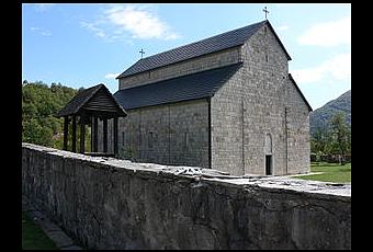 English: Piva monastery (Montenegro), close up view Deutsch: Kloster Piva (Montenegro), Blick ueber Klostermauer auf Hauptkirche. Non è questo che intendiamo quando parliamo di Piva