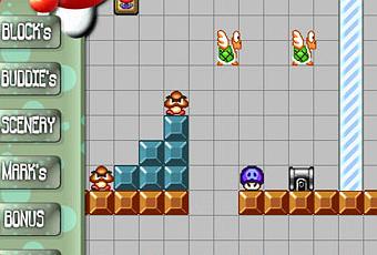 Cliccando su un elemento nel menu potremo posizionarlo con un click in uno dei riquadri della griglia, quindi potremo inserire elementi di scenario, bonus, nemici, tubi, e tante altre cose.