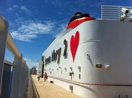 Da una parte del fumaiolo, un grande cuore dipinto accanto al nome della Nave e dall'altra parte, una proposta di matrimonio per una coppia (Stefan e Jess) che non era sulla nave, il tutto combinato con una trasmissione televisiva locale.