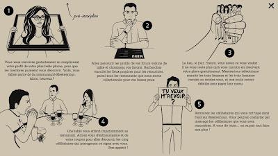 Funziona così: ci si registra via web e si compila il profilo. Si sceglie, guardano i profili registrati, con chi ci piacerebbe andare a cena e si sceglie un ristorante. A questo punto, fra tutti quelli che si sono proposti, il sito seleziona 3 uomini e 3 donne, che avranno il piacere di condividere una cena ( a prezzi scontati).
