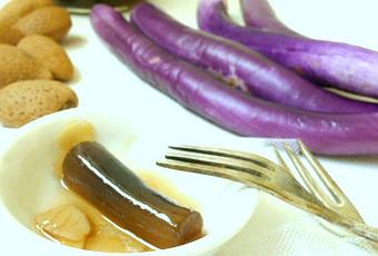 Ho continuato la bollitura dello sciroppo (per circa 15 minuti) fino ad arrivare alla densità giusta: ho versato in un piattino freddo da frigo una goccia di sciroppo e ho solcato con un coltello. Se lo solco resta aperto lo sciroppo è pronto. A quel punto ho aggiunto il succo di mezzo limone, ho versato le melanzane, ho aggiunto una manciata di filetti di mandorla, ho agitato il pentolino per mescolare bene tutto e ho spento.Ho versato subito tutto in un vasetto sterilizzato, ho tappato e capovolto finchè non si è raffreddato.Erano ottime e uso il passato perchè ahimè... le ho divorate! Alla greca! Insieme alla tazzina di caffè greco! Ma mi è venuta l'idea di aggiungere l' essenza di senape la prossima volta per fare la mostarda. Secondo me sarà ottima!