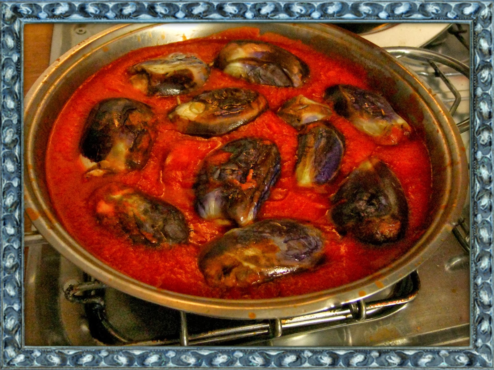 Adagiamo le melanzane .A questo punto inizia la cottura che deve essere a fuoco lento e piuttosto lunga.