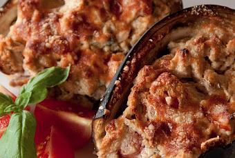 I oiled an oven dish and put the aubergines in it. I filled every aubergine with a bit of mixture and sprinkled with parmesan. I dressed with a few drops of olive oil. I cooked in the oven at 200° for 30 minutes.
