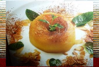 quando saranno morbide ma intere scolatele dal liquido di cottura lasciatele raffreddare completamente quindi stufatele nello zucchero di canna e passatele sotto il grill del forno per farle caramellare distribuite lo yogurt nei piatti da porzione mettete la mela guarnite con le mandorle foglioline di menta spolverate di cacao e cannella