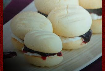 nel frattempo prepara la crema al burro lavorando il burro con lo zucchero a velo e la vaniglia fino ad ottenere un composto chiaro e soffice spalma la crema su metà dei melting moments e mezzo cucchiaino di marmellata e chiudi con un alto melting moments