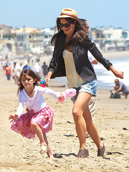 Katie Holmes corre CON I TACCHI dietro a Suri per la spiaggia di Malibù. Dolcissime... ma Katie... prossima volta infradito magari!
