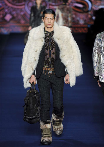 Pelliccia la parola d'ordine per Etro che veste un uomo viaggiatore, che mantiene uno stile elegante e dandy con contaminazioni nomadi.
