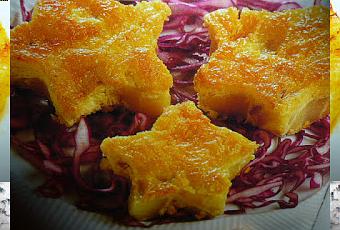 lasciate intiepidire tagliate la frittata a stelline con un taglia biscotti e servite con il cavolo rosso oli sale e pepe