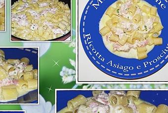 INGREDIENTI:250 gr di mezze maniche,80 gr di ricotta vaccina,80 gr di Asiago,100 gr di prosciutto cotto,1/2 bicchiere di latte fresco,50 gr di parmigiano Reggiano,1 mazzetto di prezzemolo,1 spicchio d'aglio,olio extravergine di oliva,sale,pepe.
