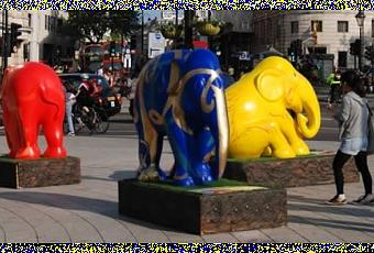 In questo periodo la città è “invasa” da piccole sculture (in gesso? in polistirolo? non lo so), raffiguranti degli elefanti. Monocolori, decorate con ghirigori argentei o dorati, oppure bianche con decori policromi, o ancora dipinte in varie tinte: tutto questo per sensibilizzare le persone, mediante un’operazione di “arte on the road”, sul problema dell’estinzione dell’elefante asiatico.