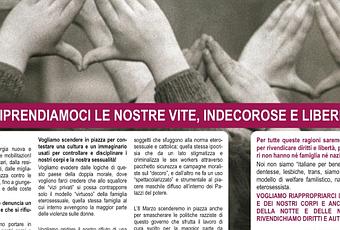 Vogliamo evadere dalle logiche di questo paese della doppia morale, dove vogliono farci credere che allo squallore dei “vizi privati” si possa contrapporre solo il modello “virtuoso” della famiglia eterosessuale, quella stessa famiglia all’interno della quale avvengono la maggior parte delle violenze sulle donne.