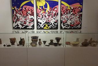 La mostra ha raccontato il tema del cibo nelle sue declinazioni sacrali e conviviali, dall’antichità ad oggi, attraverso un percorso espositivo dispiegato su quattro sezioni. Nella prima, intitolata “Il rito sacro del banchetto”, hanno trovato spazio significativi reperti, tra i quali un coltello sacrificale in ferro (machaira) proveniente dall’area sacra di Scrimbia ed esposto a Vibo Valentia, e un catino a vernice nera da Monasterace, che documentano il sacrificio agli Dei in età classica (l’uccisione della vittima e il vaso per raccogliere il suo sangue), atto imprescindibile per il pasto rituale in comune. La seconda sezione, “La presentazione dei doni e le offerte votive”, ha proposto, oltre al quadro di Recco, un ricco repertorio di ex-voto in terracotta, raffiguranti animali e frutti (tori, mele e melagrane) provenienti dai maggiori santuari greci della Calabria. Nella terza sezione, “Il procacciamento del cibo: uomo e natura”, lo spazio è stato dedicato al lavoro dell’uomo per il proprio sostentamento: dalla caccia alla pesca, dall’allevamento alla produzione. I reperti scelti svariano dagli ami da pesca in bronzo provenienti da Sibari al piatto da pesce a figure rosse da Crotone. L’ultima sezione, intitolata “Il convivio”, ha sviluppato il tema del banchetto inteso come appartenenza ad un gruppo sociale, all’interno del quale ritrovarsi per divertirsi e condividere le esperienze. I materiali archeologici esposti, a cui fa da sfondo il trittico di Vigliaturo “Festa sui prati”, costituiscono un intero set da simposio (cratere, brocca, coppe, mestoli, colini), con reperti dall’età greca arcaica a quella medievale. Accanto ad essi la ricostruzione virtuale tridimensionale del Triclinio della Casa del Drago di Kaulon, che i visitatori hanno potuto esplorare, con l’utilizzo di appositi occhiali, in uno schermo multimediale.