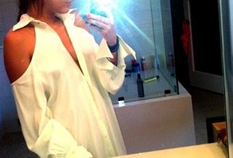 Questa volta non se messa nuda, ma si è provata un vecchio abito di sua madre, degli anni 80, e giustamente l’ha fatto sapere al mondo intero visto che l’abito le sta una meraviglia. Ma dove? non riesco nemmeno a capire dove inizia e dove finisce la manica… Ragazza mia hai proprio un brutto gusto in quanto agli abiti, anche se molte volte ci hai stupiti nelle ricorrenze più importanti sarà che forse non se li sceglie lei gli abiti? bah!