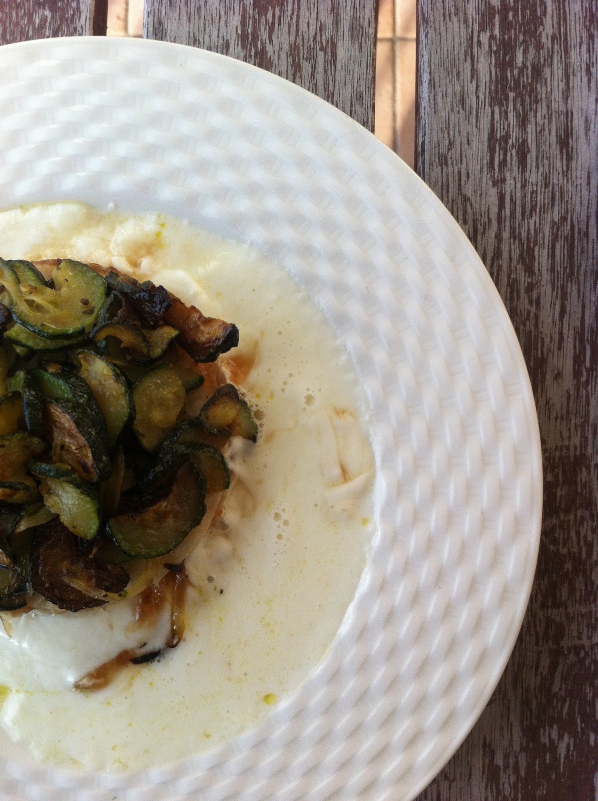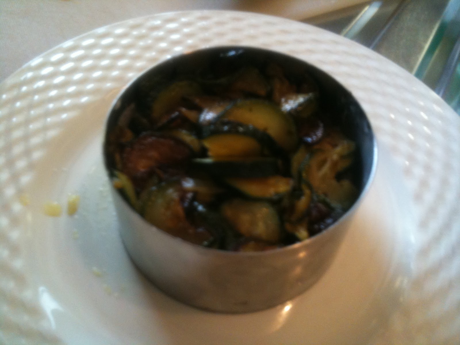 In cima al mio millefoglie ho disposto le zucchine saltate in padella.