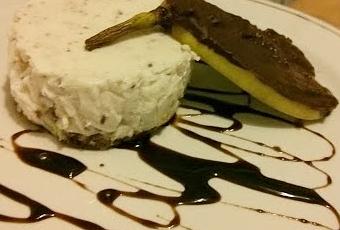 Mettere a bagno i fogli di gelatina, in una terrina montare la panna e unirla poco alla volta allo yogurt sempre mescolando dall'alto verso il basso. In un pentolino sciogliere con pochissima acqua la gelatina e unirla, sempre mescolando dall'alto verso il basso, nel composto di yogurt e panna. A parte pulire e tagliare a pezzetti la pera e tritare il cioccolato in piccoli pezzi, successivamente unire pere e cioccolato all'interno della crema! Versare la crema negli stampini al di spra del fondo preparato precedentemente, e riporre tutto in frigo per almeno 4 ore, o almeno fino a che non si sarà solidificato il tutto. Sformare e servire sul piatto da portata!
