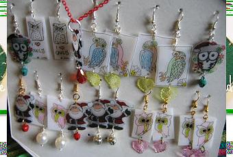 espositore ricchissimo di orecchini all'uncinetto delle amiche
