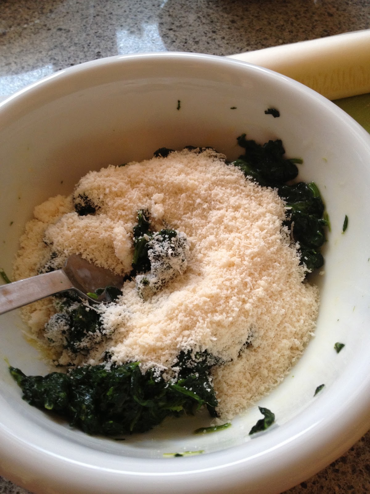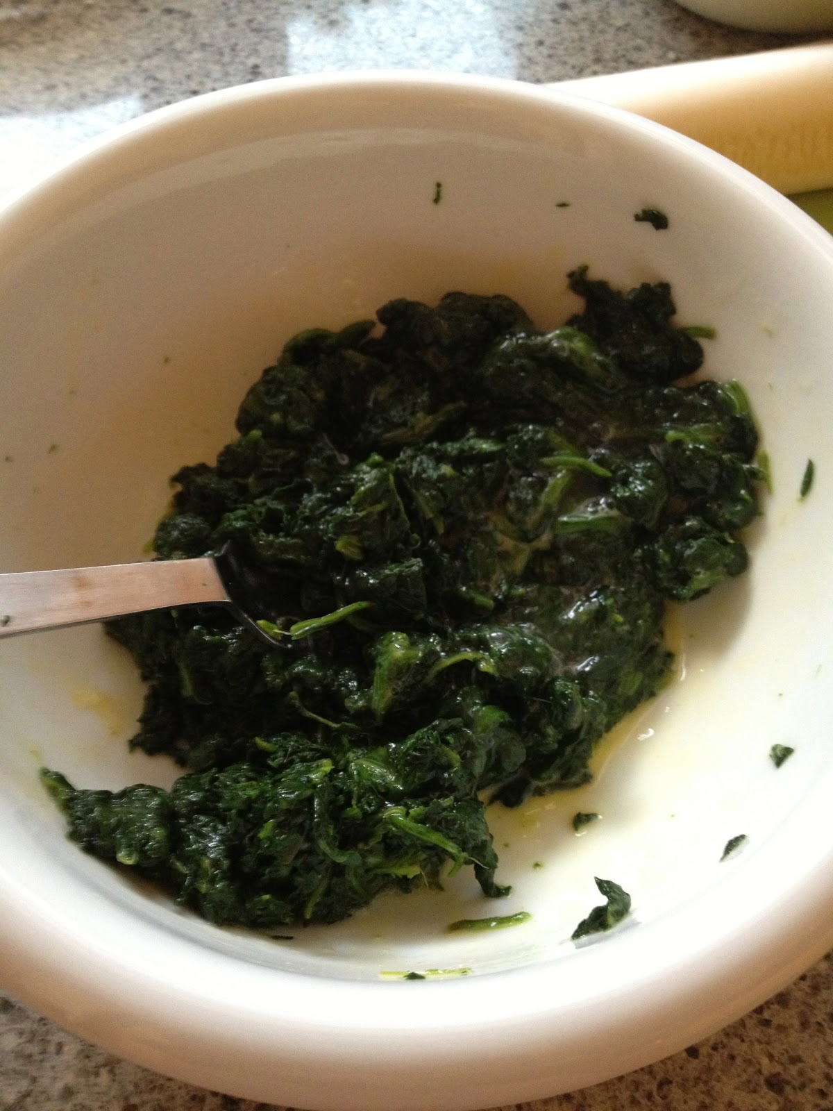 Sbattere un uovo, aggiungere gli spinaci tritatiWhisk one egg and add the spinach
