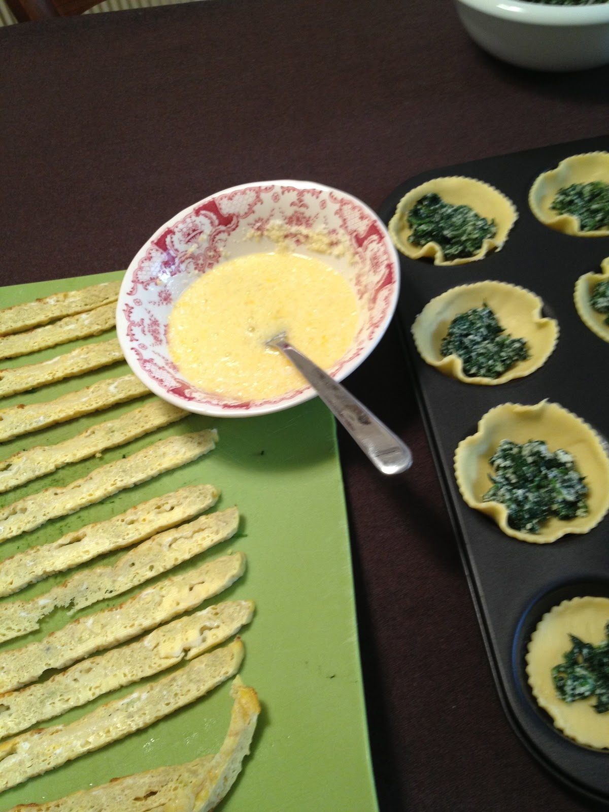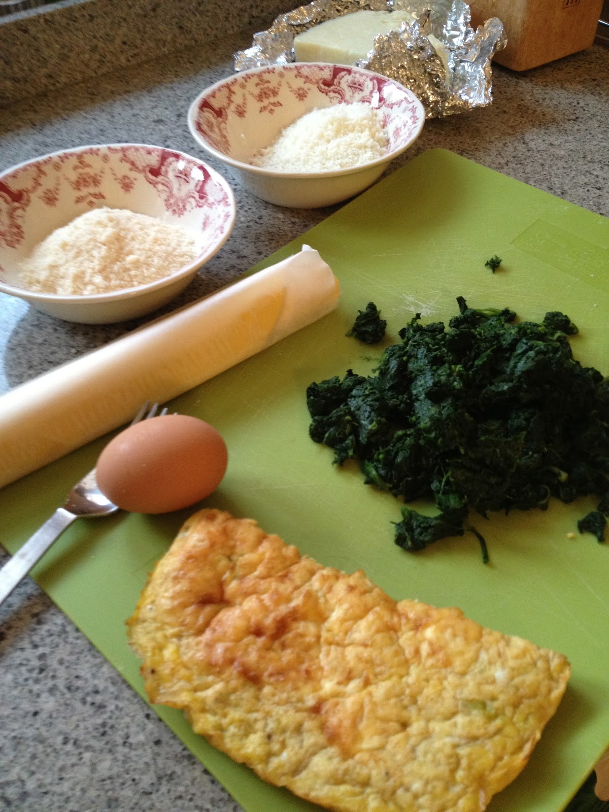 Ingredienti:1 rotolo di pasta brisee2 uova50gr di pecorino100gr di parmigiano reggiano grattugiato1 kg di spinaci, lavati, lessati e strizzati1 frittata avanzata (nel nostro caso è una frittata con formaggio)Ingredients: