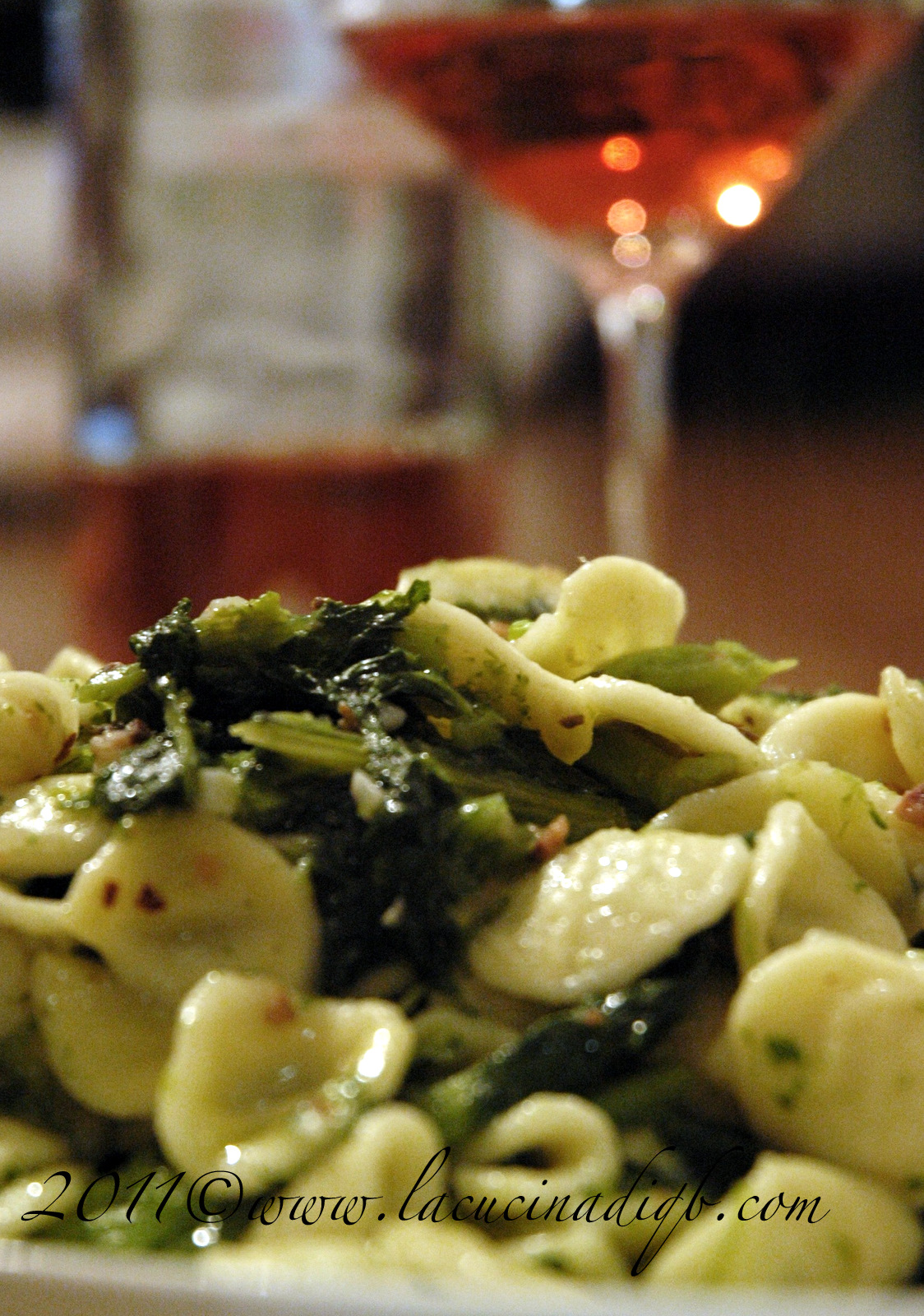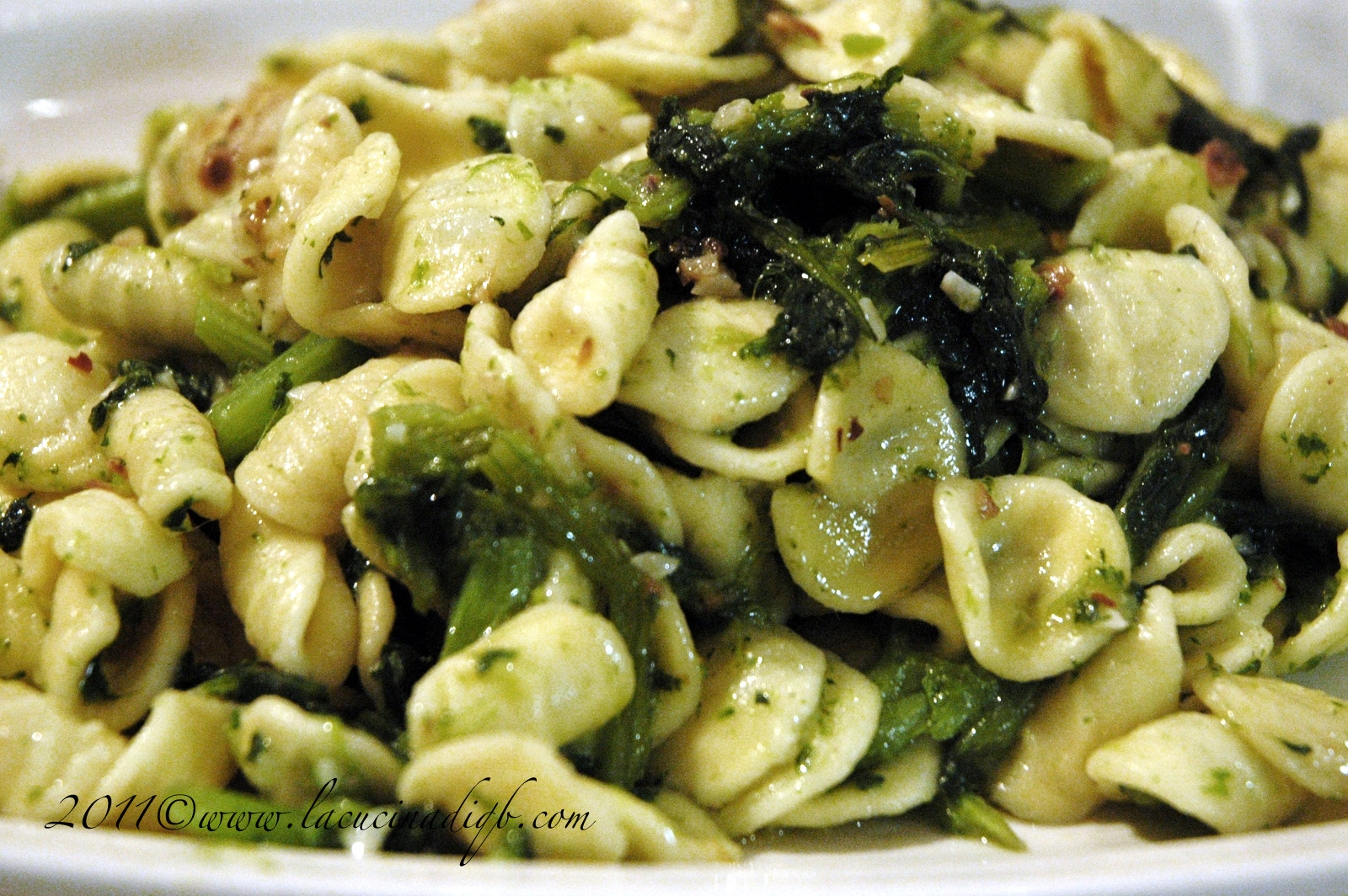 Orecchiette Senatore Cappelli con cime di rapaIngredienti400 gr di orecchiette Senatore Capellini in purezza Coop, 600 gr (circa) di cime di rapa, 3 spicchi d'aglio, 5-6 alici, peperoncino, olio eco, saleProcedimentoPulire le cime di rapa dalle foglie più spesse ed un po' sciupate e dai gambi più coriacei, lavarle bene, tagliarle lasciando intere le cime.Portare a bollore dell'acqua salata e cucinare contemporaneamente cime di rapa ed orecchiette.Nel frattempo togliere la parte interna di due spicchi d'aglio (che rende l'aglio amaro in caso di cottura prolungata e soprattutto è la causa dell'alito "eccessivamente profumato") e tritarli finemente unendo le acciughe. Passare accuratamente il terzo spicchio sulle pareti di una padella o salta pasta, versare un po' di olio evo e rosolare il trito aromatico. Unire il peperoncino.Scolare la pasta, versarla nella padella e saltarla per un minuto così da condirla uniformemente.Servire in piatti ovali caldi, magari con un bicchiere di Salice Salentino Rosato e con un sorriso di ringraziamento, visto che il piatto l'ha cucinato Roberto. ;)