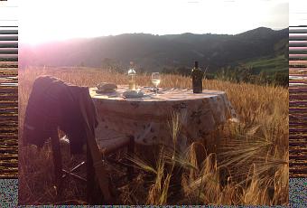 Non ci rendiamo conto di quanta forza ci sia nella verità, nella semplicità di tutto ciò che ci circonda. Un tramonto, lo spazio infinito del cielo colorato di vero! L’infinita teoria di colline e boschi che scivolano verso l’appennino, tra torri e castelli medievali, tra tracce diroccate di una storia antica, presente, visibile, tangibile, la nostra. La semplicità di un campo di grano che cambia sotto il mio sguardo e un ragno che tesse un’infinita tela per catturarmi. Una cena tutta per me, di un lusso unico di vivere tra il campo di grano e le colline e il sole che tramonta solo per me, questa sera; un vino, cose preparate da me, dell’orto, e di un Made in Italy sconvolgente!