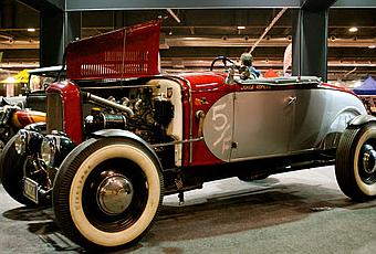 Questa Ford Model A del 1931 era di un autista dell'ambasciata italiana in Argentina che l'ha portata in Europa. Qui, l'attuale proprietario l'ha trasformata in hot-rod, sostituendo il motore originale quattro cilindri con un Ford V8 del 1949 e installando una quantità di componenti speciali d'epoca. I dettagli li trovate su LowRide del luglio 2010. Le foto le ho scattate a Verona durante l'ultimo bike expò.