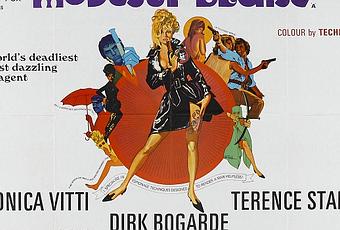 Tratto dall’omonima striscia a fumetti di Peter O’Donnell, Modesty Blaise – La bellissima che uccide (1966) è un insolito ma al tempo stesso assai gradevole divertissement, che Joseph Losey, reduce dai grandi successi di Eva (1962) e Il servo (1963), realizzava mettendo insieme un cast di stelle di prim’ordine, in cui svettavano Monica Vitti, che nel 1964 era stata la tormentata protagonista di Deserto Rosso di Michelangelo Antonioni, qui nell’insolita veste di eroina – agente segreto, e Terence Stamp, che, qualche anno dopo, avrebbe interpretato ruoli particolarmente significativi in Toby Damnit di Federico Fellini e in Teorema di Pier Paolo Pasolini. Inoltre partecipano a questo a bizzarro esperimento cinematografico il Dirk Bogarde di Morte A Venezia di Luchino Visconti e Rossella Falk, la chiaroveggente del pluripremiato 8½. Nomi questi che già da soli valgono il prezzo del biglietto e quanto meno dispongono l’animo nel migliore dei modi accostandosi alla visione del film, che diverte per la stravaganza della messa in scena, sempre in bilico tra la più classica delle spy story e i toni della farsa, e spiazza per le varie trovate che disorientano piacevolmente lo spettatore, continuamente convocato a non prendere sul serio quanto accade e a lasciarsi trasportare dalla dichiarata vena comica e fantastica.